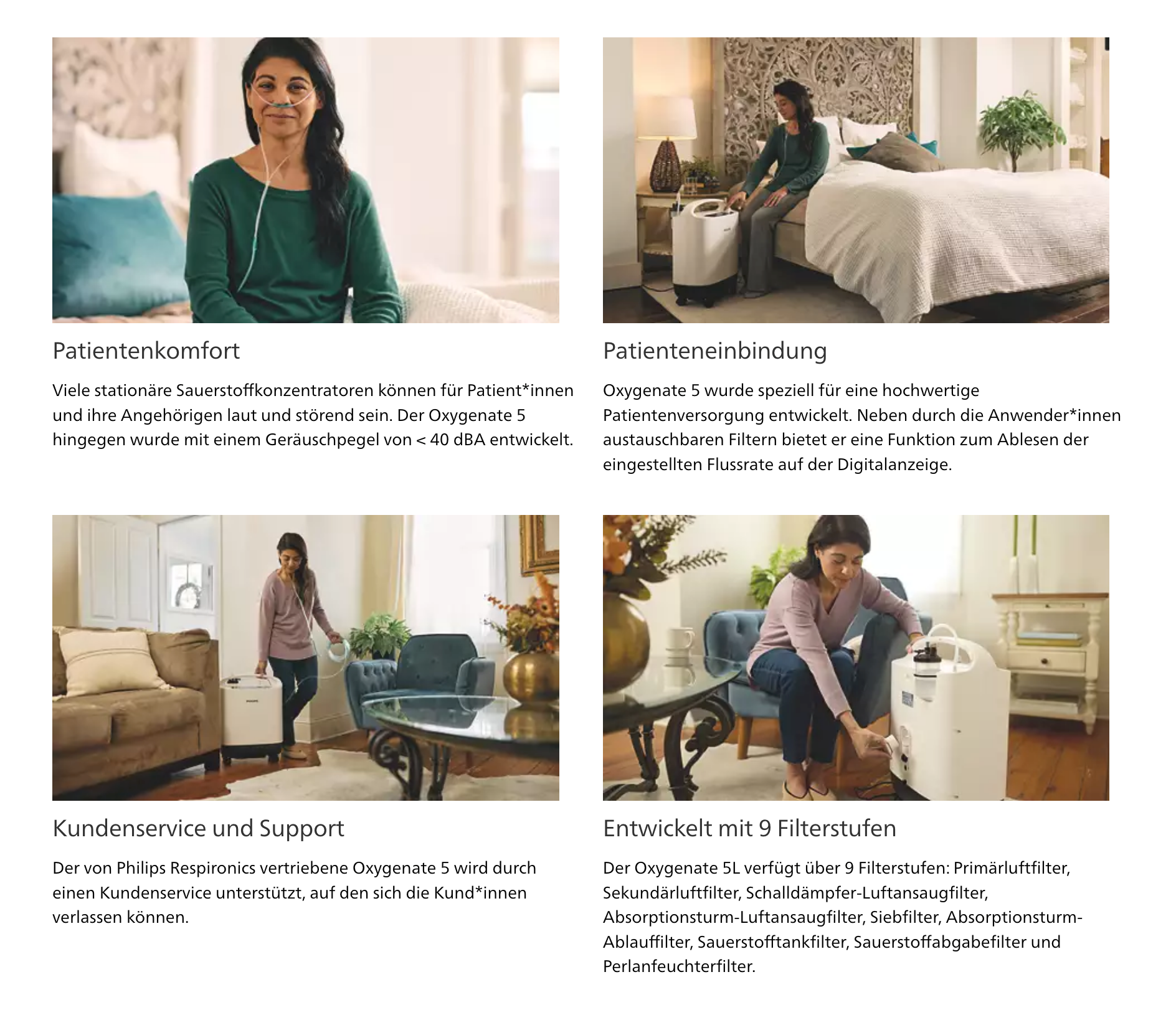 Der Oxygenate 5 verfügt über ein mehrstufiges Filtersystem, das eine saubere Luftzufuhr und eine zuverlässige Sauerstoffproduktion unterstützt: