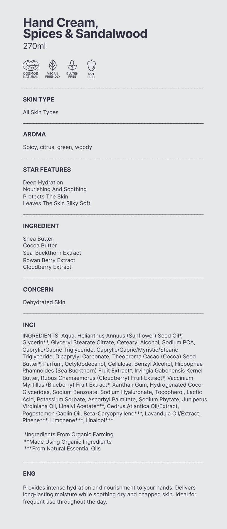 Natural. Silk Skin Hand Cream, Spices & Sandalwood