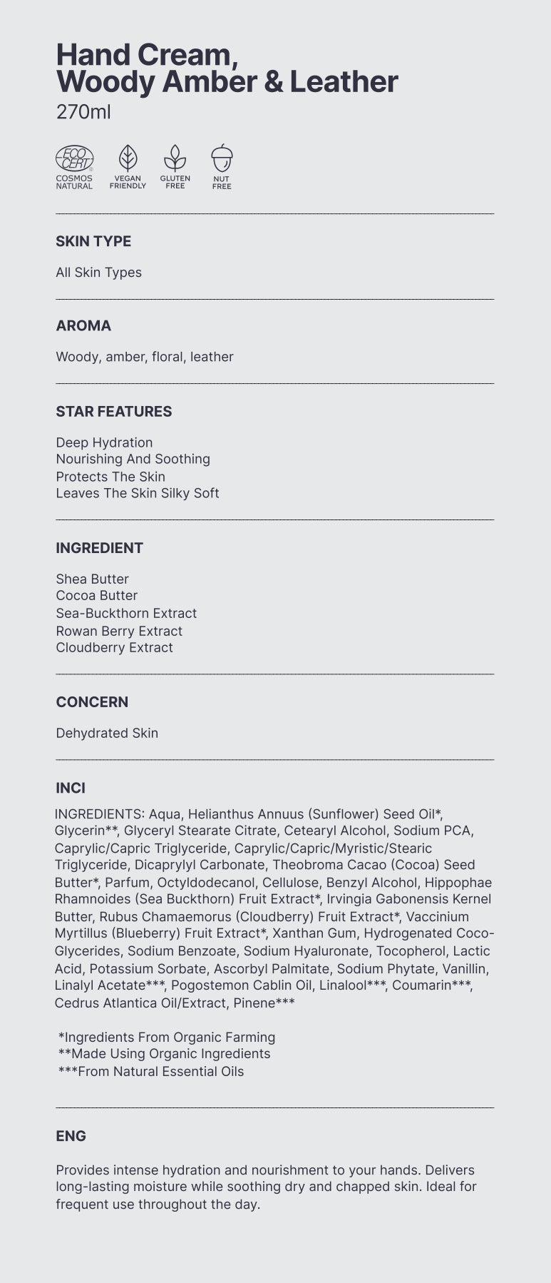 Natural. Silk Skin Hand Cream, Woody Amber & Leather